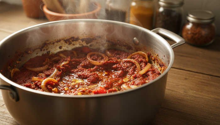 | Cocción del tomate | Medio | 6–8 min | Pasta espesa, sin líquido visible |