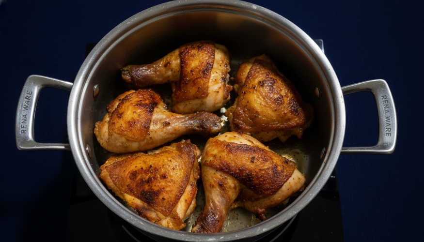 La cocina a inducción es ideal para este guiso porque permite control preciso de temperatura. Usa una olla de acero inoxidable de fondo triple para el dorado inicial (nivel 8), y reduce a nivel 1–3 para la cocción tapada. La distribución uniforme del calor evita puntos calientes y el pollo se cocina de manera más homogénea que en cocina a gas.